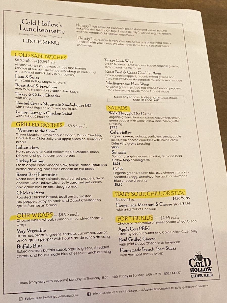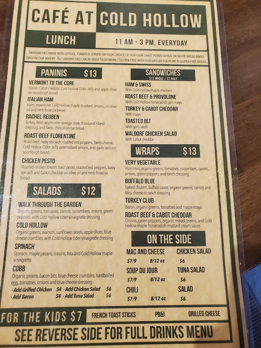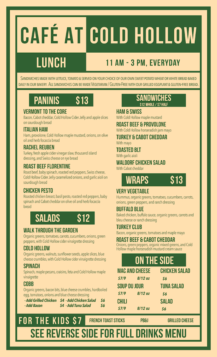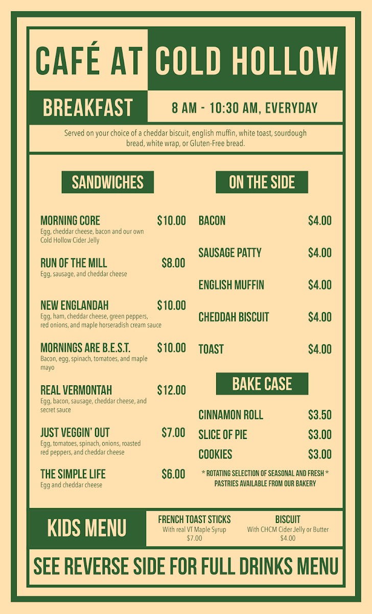Cafe at Cold Hollow Menu